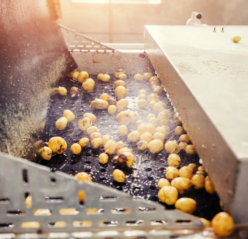 RTL Patat has a dedicated washing station. We intentionally chose a separate water circuit to prevent contamination. After the unwashed potatoes pass through the washing drum, they are rinsed and dried. The potatoes can also be checked in the circuit, ensuring we can deliver the desired quality.